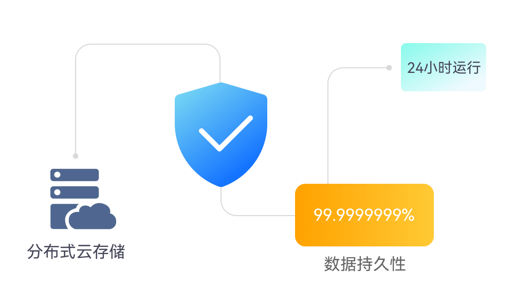 采用分布式云存储架构,数据持久性高达99.9999999%,全方位保障数据安全。