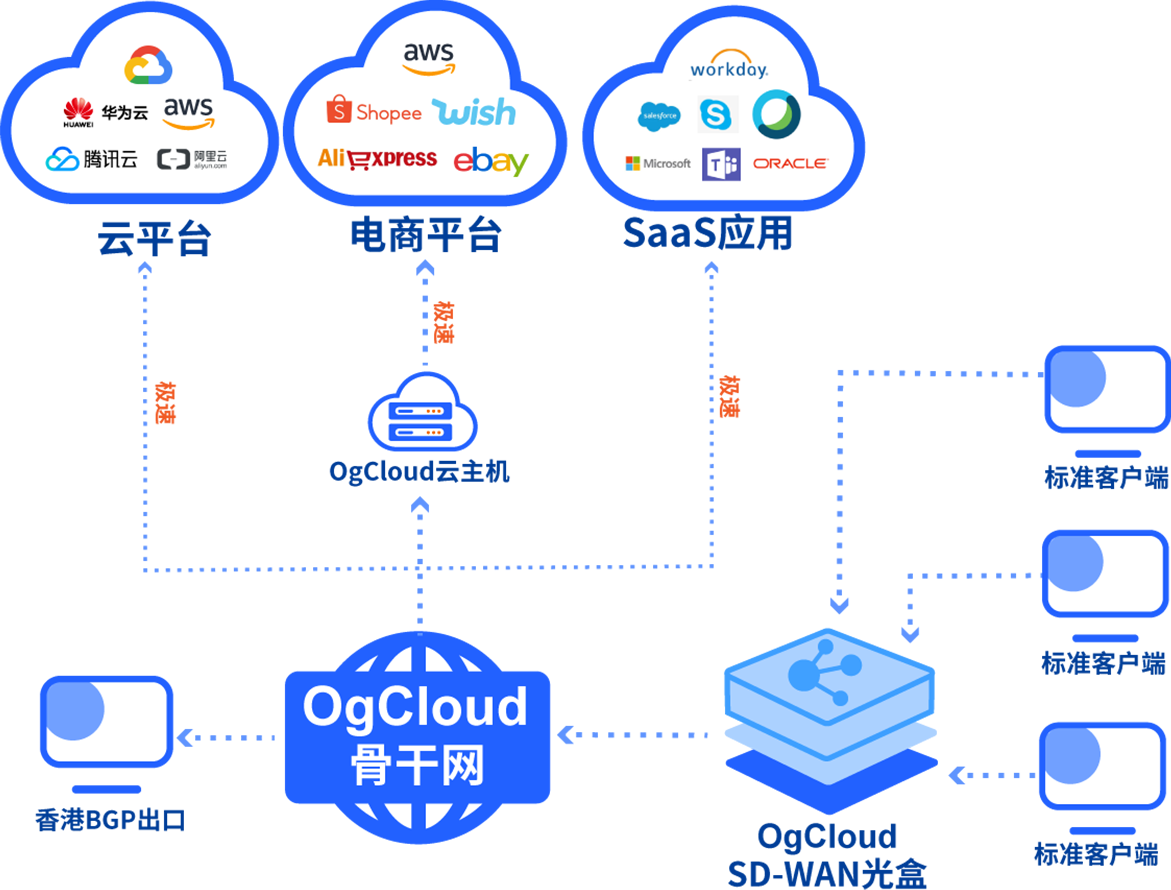 优化 Microsoft 365、Zoom、Skype等海外SaaS应用的访问效果。